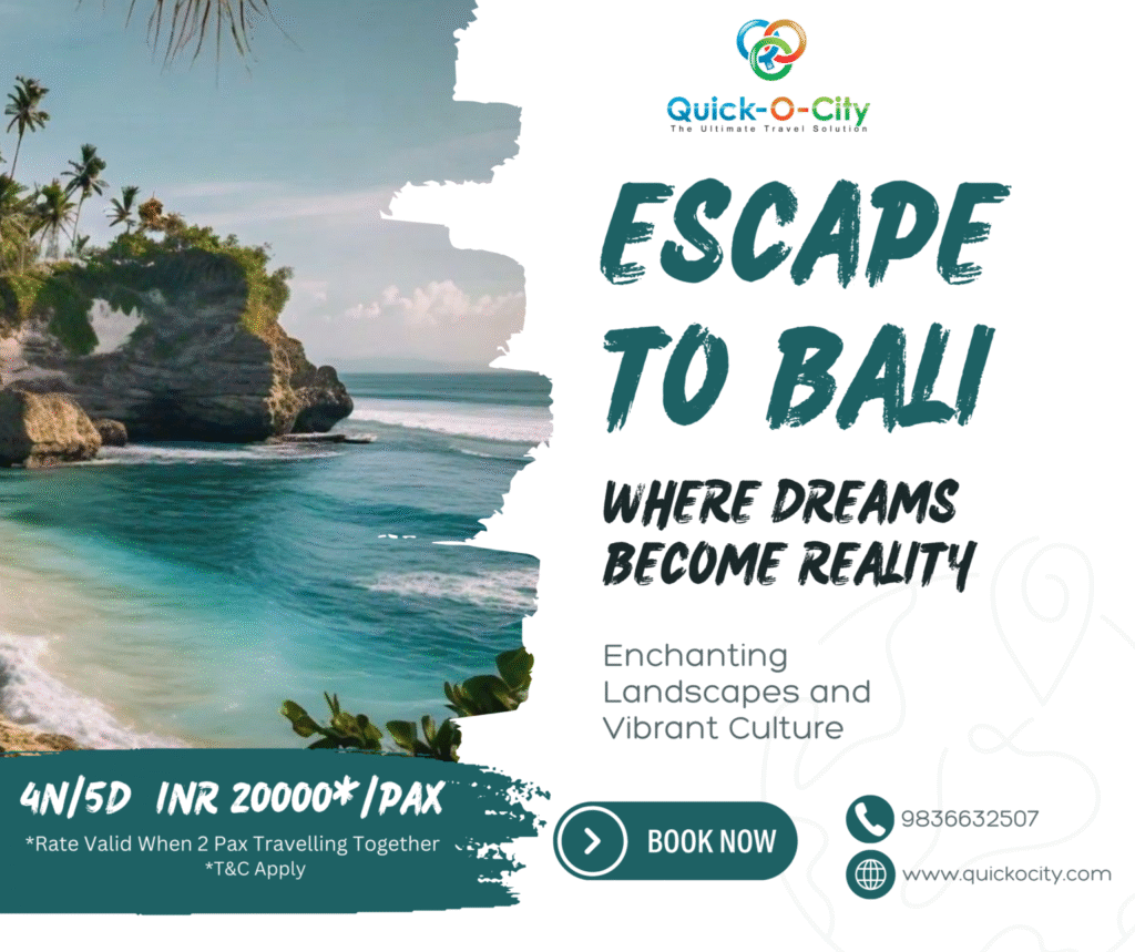 Bali is a destination that captivates the heart and soul. From its breathtaking landscapes to its rich cultural heritage, there’s something for everyone to enjoy. Book your dream trip with Quick-O-City and experience the magic of Bali. Visit www.quickocity.com to learn more and start planning your adventure today!